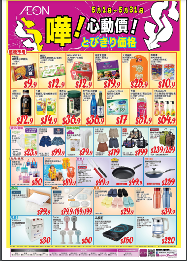 AEON Stores 嘩! 心動價!推廣日期︰2023年5月1日至5月31日https://www.aeonstores.com.hk/promotion/download?id=2399&q[id_eq]=2399&f=file_chk