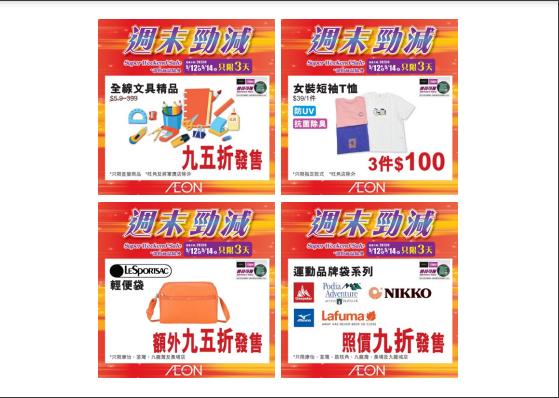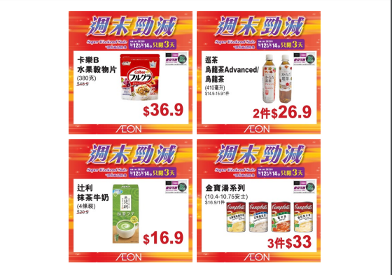 AEON Stores 週末勁減推廣日期:2023年5月12日至5月14日https://www.aeonstores.com.hk/promotion/download?id=2414&q[id_eq]=2414&f=file_chk