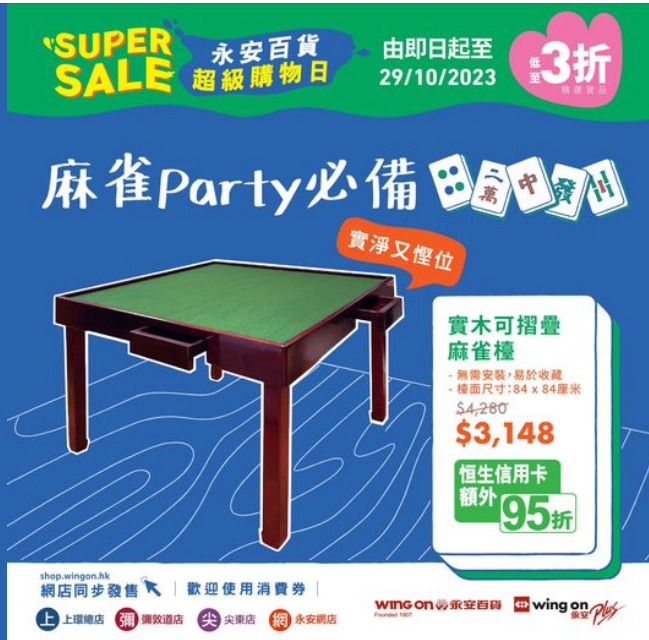 星期六日或者遇著打風,最容易麻雀癮起!想隨時都可以叫班朋友上嚟打返幾圈,就一於趁 #超級購物日 買定張易於收藏嘅實木可摺疊麻雀檯,咁就幾時都可以開麻雀party啦~