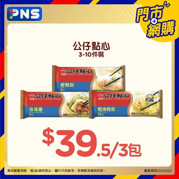 $39.5/3包*VIP優惠只適用於2025年3月18日。每日最高可享$225優惠。公仔點心優惠適用於有售賣此貨品之香港百佳店舖及PNS網購。其他優惠只適用於PNS網購。優惠以每張訂單計算。圖片只供參考。受條款及細則約束。https://bit.ly/3RZkwkt