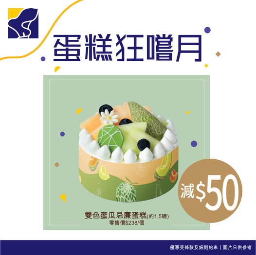 【 蛋糕狂嚐月 - 10月推介】放假有咩做?不如嚟聖安娜買個「雙色蜜瓜忌廉蛋糕」Chill一Chill!雙色蜜瓜忌廉蛋糕舖滿啖啖新鮮多汁青肉蜜瓜及哈蜜瓜,內層忌廉夾著大片雙色蜜瓜肉,配上鬆軟海綿蛋糕,清甜多汁好Juicy,每一口都食到蜜瓜肉超滿足!即日起至10月31日,可以優惠價$188預訂/購買「雙色蜜瓜忌廉蛋糕」(原價$238),消暑一流,啱曬今個盛夏!產品資料: 【雙色蜜瓜忌廉蛋糕】(約1.5磅) 零售價: $238優惠價: $188