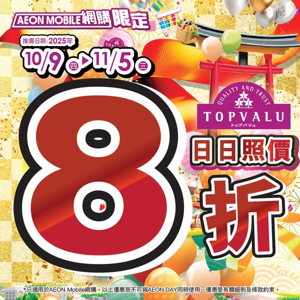 *只適用於AEON Mobile網購。以上優惠恕不可與AEON DAY同時使用。優惠受有關細則及條款約束