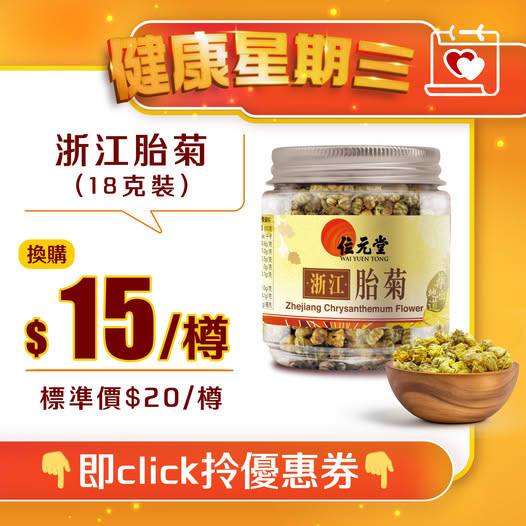 【健康星期三#浙江胎菊】#位元堂浙江胎菊 有平肝明目、清熱解毒之功效,有助 #紓緩眼睛疲勞,令雙眼保持Bling Bling有神。包裝輕便,沖泡簡單,放在家中或帶去辦公室飲都得!花茶口味清香,每日一杯靚靚花茶,心情好咗,人都精神啲!即click下面“發送WhatsApp訊息”拎優惠券,以$15選購浙江胎菊 (18克裝)攞優惠券步驟:讚好 位元堂 按“發送WhatsApp訊息”,即可獲得電子優惠券憑優惠券可享$15選購 #浙江胎菊 (18克裝)*優惠期至2025年10月14日。優惠券數量有限,送完即止。優惠券派發以主辦單位電腦紀錄時間為準,優惠券會經 WhatsApp 發送。優惠只適用於位元堂香港分店。圖片只供參考。受條款及細則約束。銷售點:位元堂門市│逢週日健康日指定產品享獨家優惠:https://shorturl.at/2ELOP
