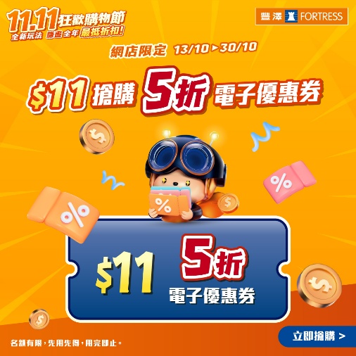 🔶$11搶購5折電子優惠券,買任何產品可享全單半價優惠,名額有限,萬勿錯過