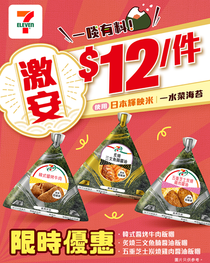 一連3日 7-SELECT 飯糰激安優惠 $12/件