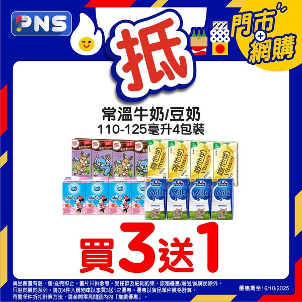 優惠期至2025年10月16日。優惠適用於有售賣此貨品之香港百佳店舖及PNS網購。需登入PNS網購以查看贈品優惠。數量有限,送/售/換完即止,優惠以每張訂單計算。圖片只供參考。受條款及細則約束。
