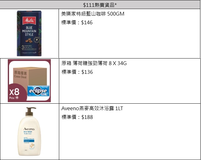 優惠3:45款人氣貨品$11起 精選貨品$111/3件或$111/4件自由配搭
