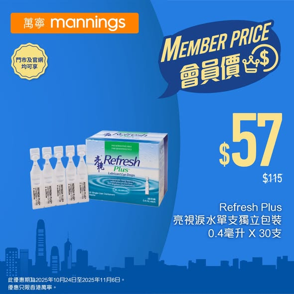 獨家會員優惠價Refresh Plus亮視淚水單支獨立包裝 0.4毫升 X 30支
