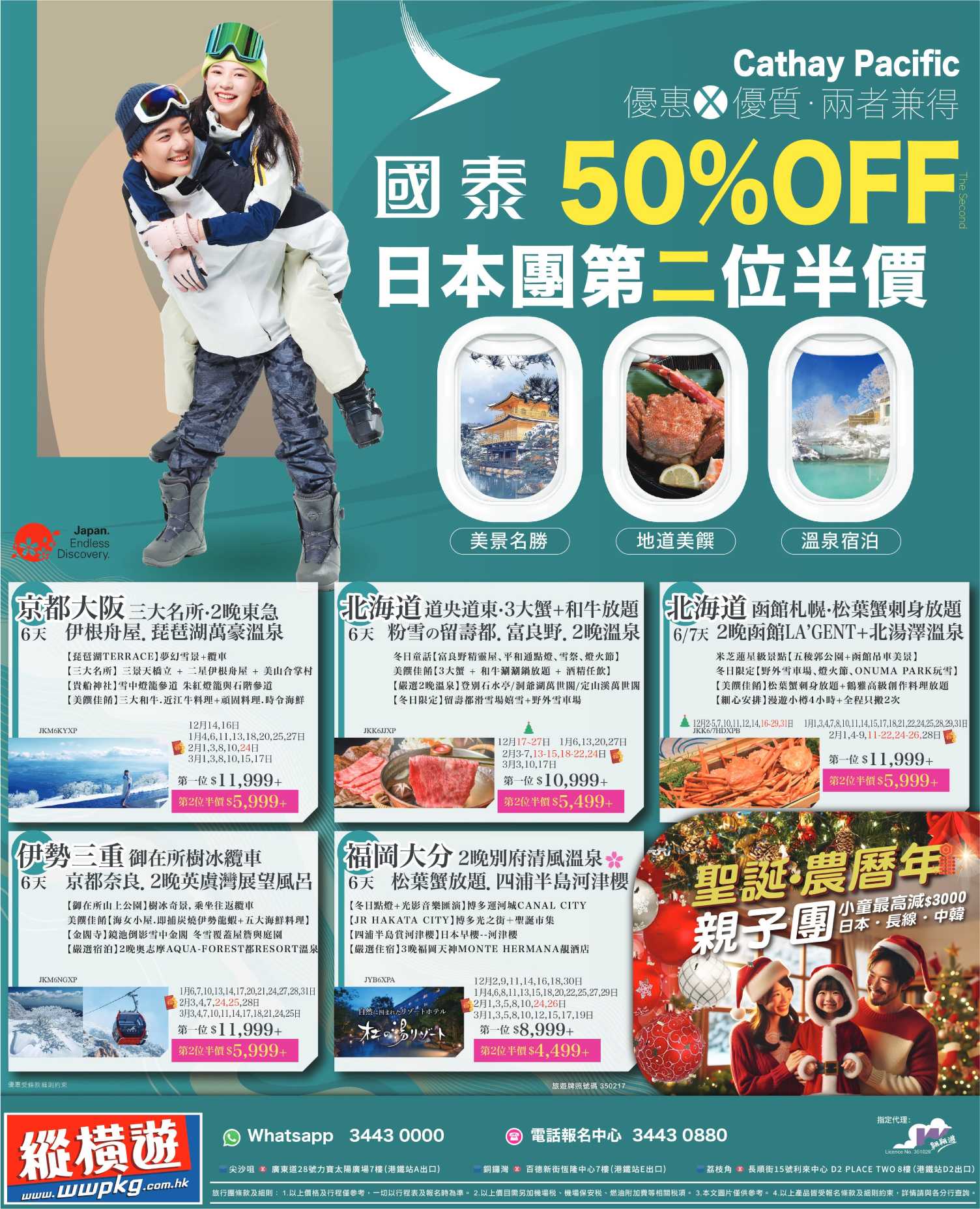 全新國泰. 二款50%OFF日本團隊已推出冬天樹冰三重伊勢. 京都大阪乘搭優質. 國泰航空去日本玩返轉 嚴選溫泉限定10個秋冬旅行團,第二位半價50%OFF 快點一齊出發啦立即查詢:https://tinyurl.com/3vsm3ufy