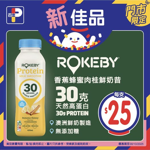 *優惠期至 30/10/2025。以上優惠適用於大部分香港百佳、FUSION、TASTE、INTERNATIONAL ,並不適用於 PNS 網購、百佳旗下的其他超市品牌、數碼港商場 3 樓、百佳快閃特賣埸及新鮮食品優惠並不適用於 TASTE x FRESH 新鮮生活之店舖。貨品數量有限,售/送/換完即止。圖片只供參考。受條款及細則約束。以每張發票計算。