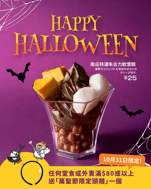 而喺10月31日Halloween當日,只要惠顧堂食或外賣*滿$80或以上,即送靚靚「#萬聖節限定頭箍」一個!勁cute勁有氣氛,行出街包你搶Fo