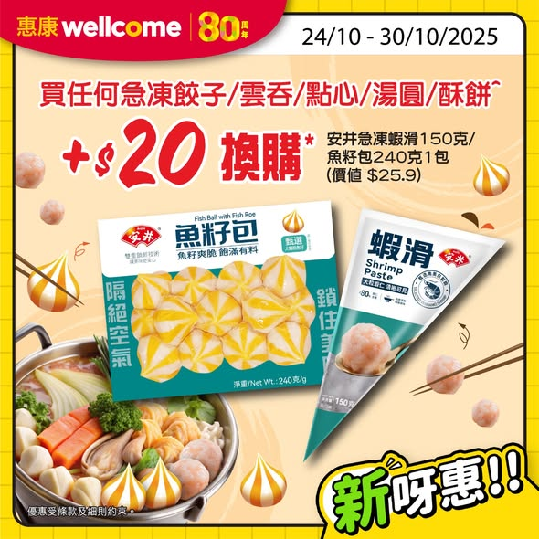 ,唔好錯過多款超值產品!今期惠康有安井急凍蝦滑/魚籽包、陳記點心、樂事薯片及指定家居產品,快啲嚟入貨啦
