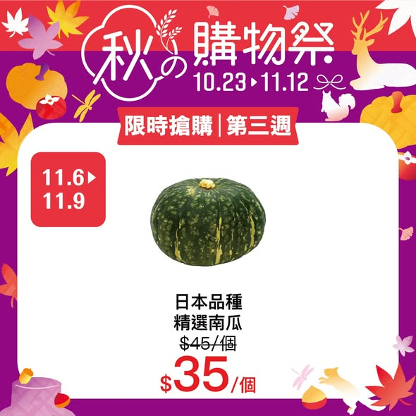 【#UNY秋の購物祭 限時搶購優惠最後一週!必搶割引商品一覽】UNY秋の購物祭嚟到最後一星期,以下送上第三週「限時搶購」商品推介,畀大家把握最後機會衝刺掃貨!即日起至11月12日,多款精選日本食材以限時割引價發售,包括秋季當造日本南瓜同人氣星加坡叻沙拉麵,湯底濃厚麵條掛汁, 絕對係邪惡宵夜之選! 更多「秋の購物祭」優惠詳情:http://bit.ly/42LCz3Q—一APP盡享會員儲分、獎賞兌換及網購體驗, 立即下載CU APP:https://bmai.cc/4p7cku