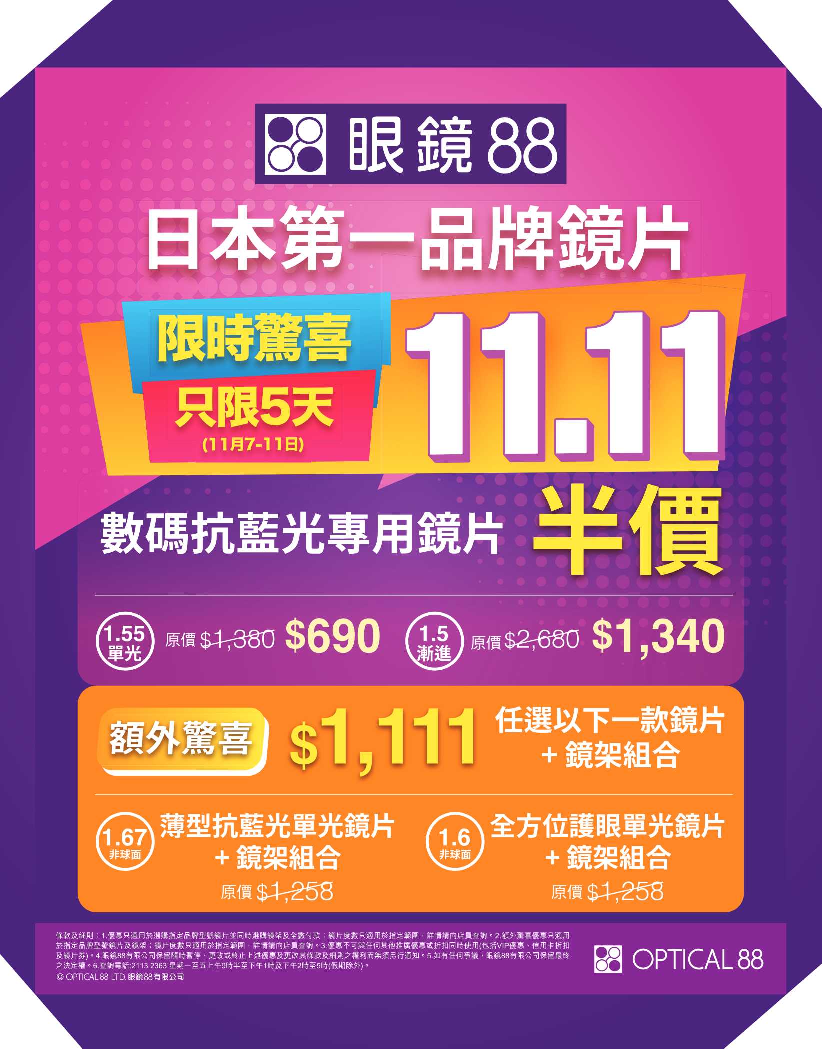 #OPTICAL88 11.11限時驚喜優惠‼️ 只限5天