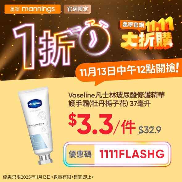 優惠碼只限於2025年11月11日及13日中午12時0分至晚上11時59分使用。
