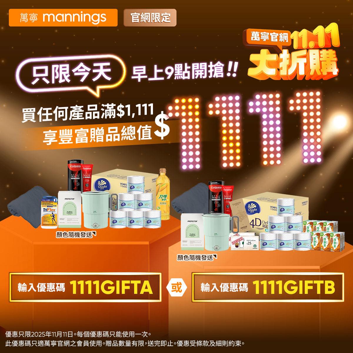 11.11 大折購】只限今日!買滿 $1111即送你價值$1111禮品