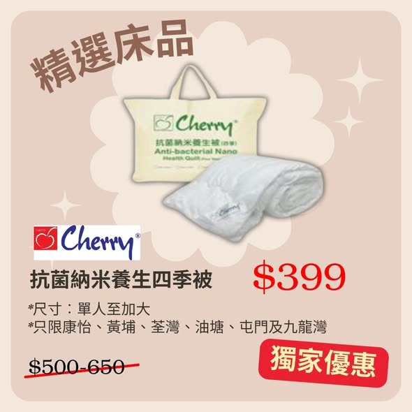 【暖笠笠床品精選】嚟緊個星期氣溫將會明顯轉涼,好想賴喺床上瞓覺呀 ~瞓覺當然要瞓得舒服喇 今期精選幾款暖笠笠嘅 #床品 比大家! #Casablanca石墨烯抗菌感溫 #四季被尺寸:單人至加大$399 (原價$999-1399)#Afontane自潔免洗四季被*尺寸︰單人至加大$790-990 (原價$1580-1980)#Cherry抗菌納米養生四季被*尺寸︰單人至加大$399 (原價$500-650)#J-Tex#羊毛被*尺寸:單人至加大$299 (原價$699-899)推廣期:即日至2025年11月25日*優惠受條款及細則約束。 分店位置:https://bit.ly/4gQpAT9 了解更多:https://bit.ly/3BoVhDS 24小時網上日式超市及更多網購資訊盡在 :https://www.aeoncity.com.hk/