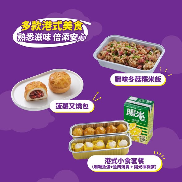 第三寶:品嚐機上提供嘅各種港式美食,唔怕食唔慣!