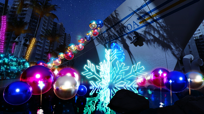 當聖誕燈飾化作跳動音符,鏡面光影奏出迷人旋律,這不僅是一場打卡之旅,更是戀人牽手、親子合照、朋友嬉笑的繽紛舞台!【THE WISHPHERE@THE WHAMPOA】以聖誕、音樂與電影為靈感主軸,於黃埔號打造多個絢麗打卡熱點——從閃耀奪目的聖誕樹拱門裝置,到七彩光譜交織的藝術花園,再到飄浮雪花點綴的浪漫場景,整個空間化身為一座光影交錯的節日舞台,邀你沉浸於一場視覺與感官交融的聖誕盛典。