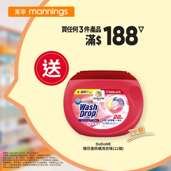 萬寧官方網店購物優惠由上午6時至晚上11時59分,數量有限,送/售完即止。部份產品/優惠不適用於澳門分店/萬寧官方網店,優惠受條款及細則約束,詳情請參閱 www.mannings.com.hk。