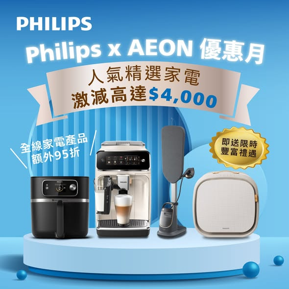 【Philips x AEON 最強優惠月!多款人氣精選家電 限時激減高達 4,000】
