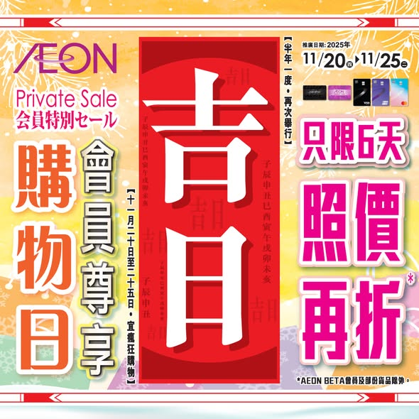 推廣受有關條款及細則約束,詳情請向店員查詢或參閱 www.aeon.com.hk。
