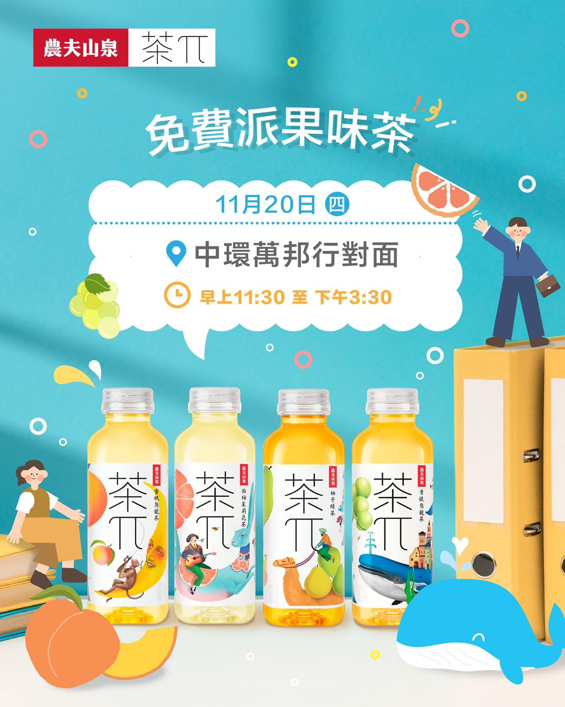 茶π將會喺11月20號上午11點半至下午3點半,請大家飲果味茶,有蜜桃烏龍茶、青提烏龍茶、西柚茉莉花茶同柚子綠茶(隨機派發),食飯前定食下午茶都記得過嚟免費拎一支啦!