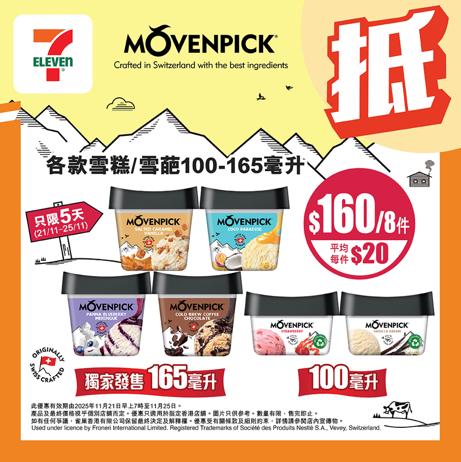 7仔最新嘅雪糕優惠登場喇📢!今期雪糕優惠集合咗MOVENPICK🍨,同埋雀巢MEGA雪糕批及能得利冰棒✨,總有一款啱你口味啦😋,仲唔快啲嚟7仔掃筍貨🛒!
