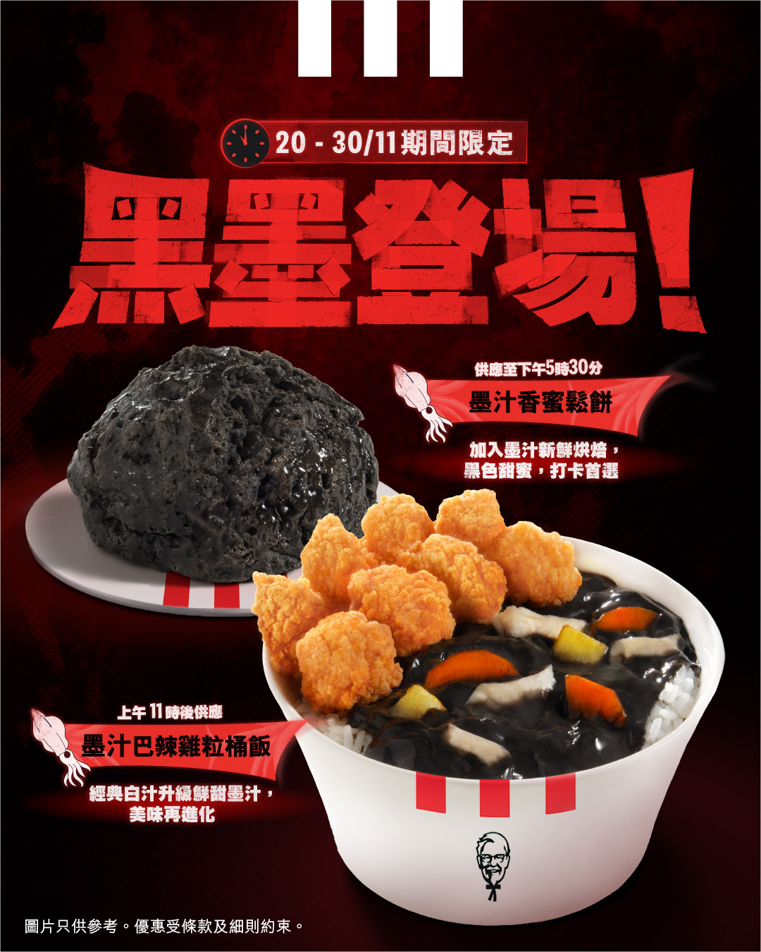 - 「黑墨登場系列」於全線KFC分店供應 (不適用於山東街、亞洲國際博覽館、赤柱廣場、又一城及啟德分店)
