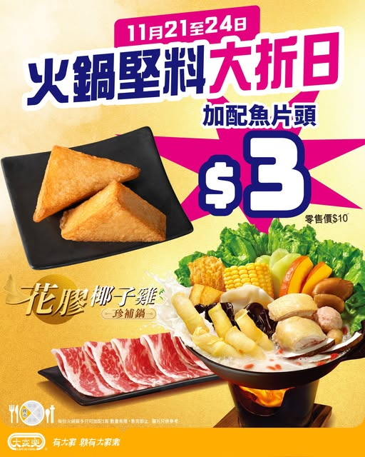 【🔥大家樂火鍋堅料大折日!$3️⃣加配魚片頭🐟🫕】