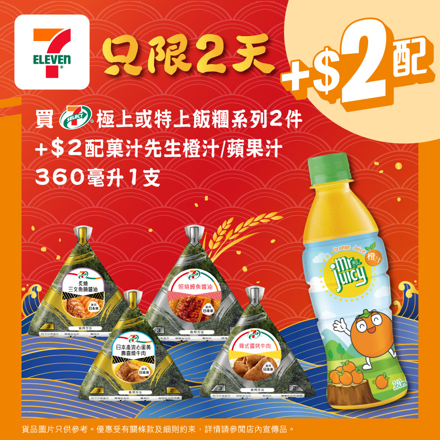 7-SELECT 極上或特上飯糰【加$2配嘢飲】