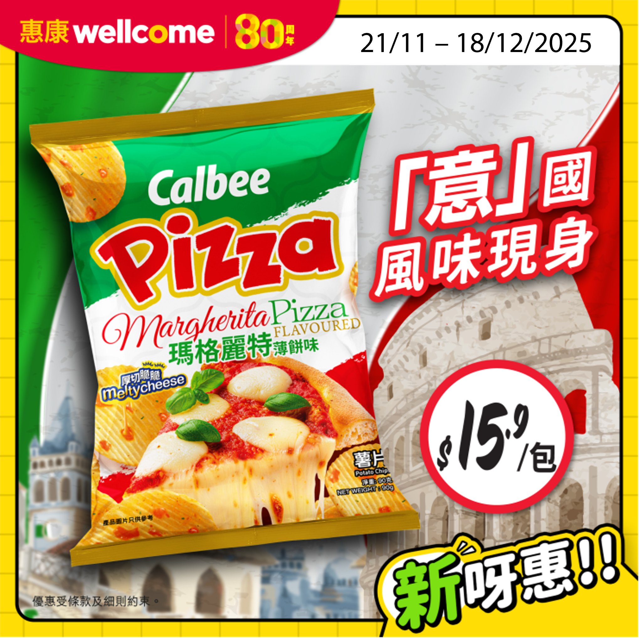 卡樂B 瑪格麗特薄餅味薯片優惠價$15.9/件*富有意國風味嘅瑪格麗特薄餅味,搭配Pizza薯片獨有嘅芝士碎粒,再配上波浪形嘅香脆可口嘅薯片,係不可抗拒獨一無二嘅味道呀 !