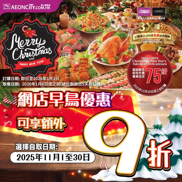 【AEON網上購物城 「聖誕派對美食🎅」折上折早鳥優惠🥳
