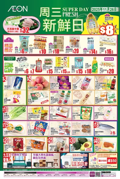 指定特許銷售商仲有周三新鮮日優惠,只係特定分店有架咋,快d黎AEON睇睇啦!