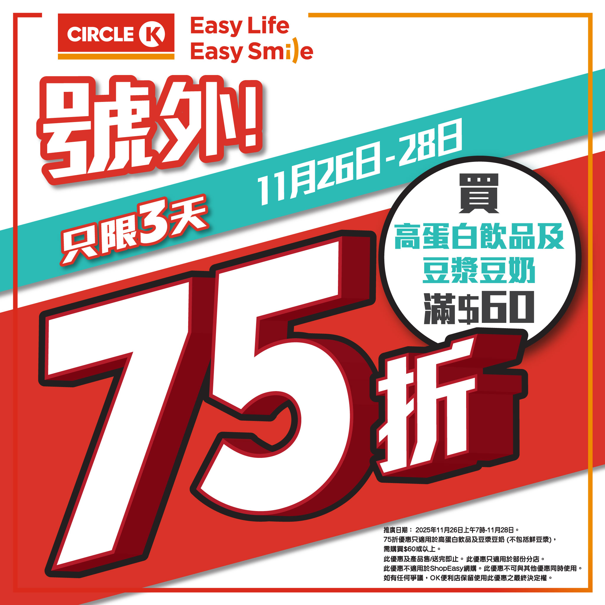 *75折優惠只適用於高蛋白飲品及豆漿豆奶(不包括鮮豆漿)