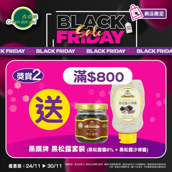 滿$800送 黑鑽牌 黑松露醬8% + 黑松露沙律醬 各1件 (價值$116)