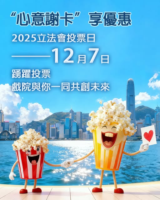 • 此優惠只適用於戲院票房購票,網上/手機程式/自助售票機/電話/團體及包場訂票恕不適用)。