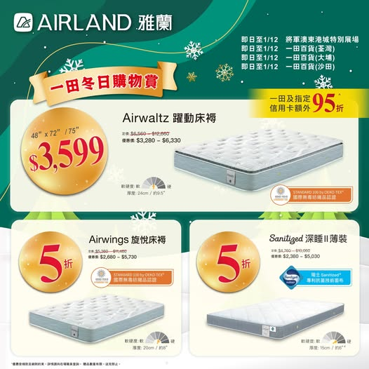 【#一田冬日購物賞】精選床褥低至48折 再額外95折🔥