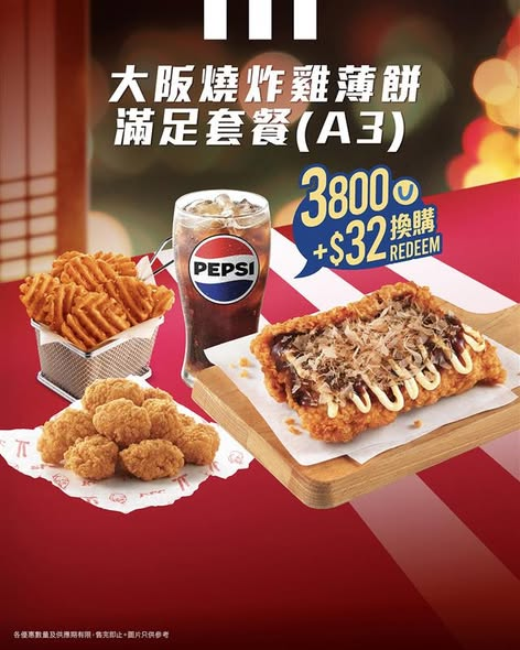1. 憑3,800分+$32換購大阪燒炸雞薄餅滿足套餐(A3)