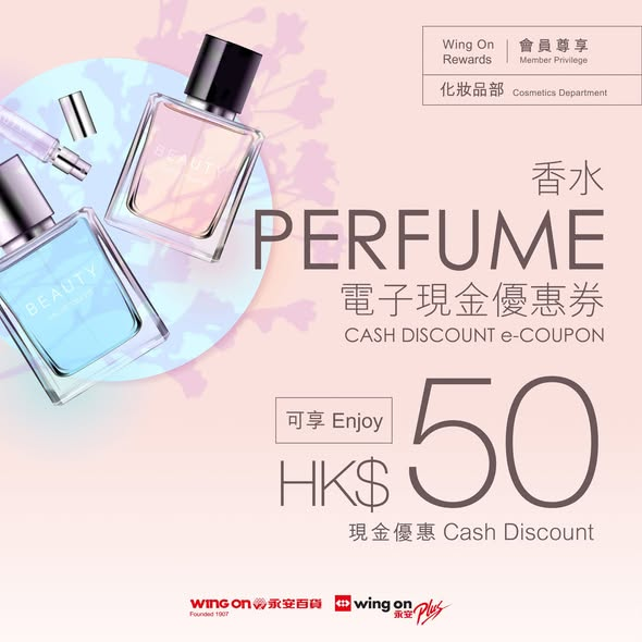 【Wing On 會員尊享$50香水電子現金優惠券】