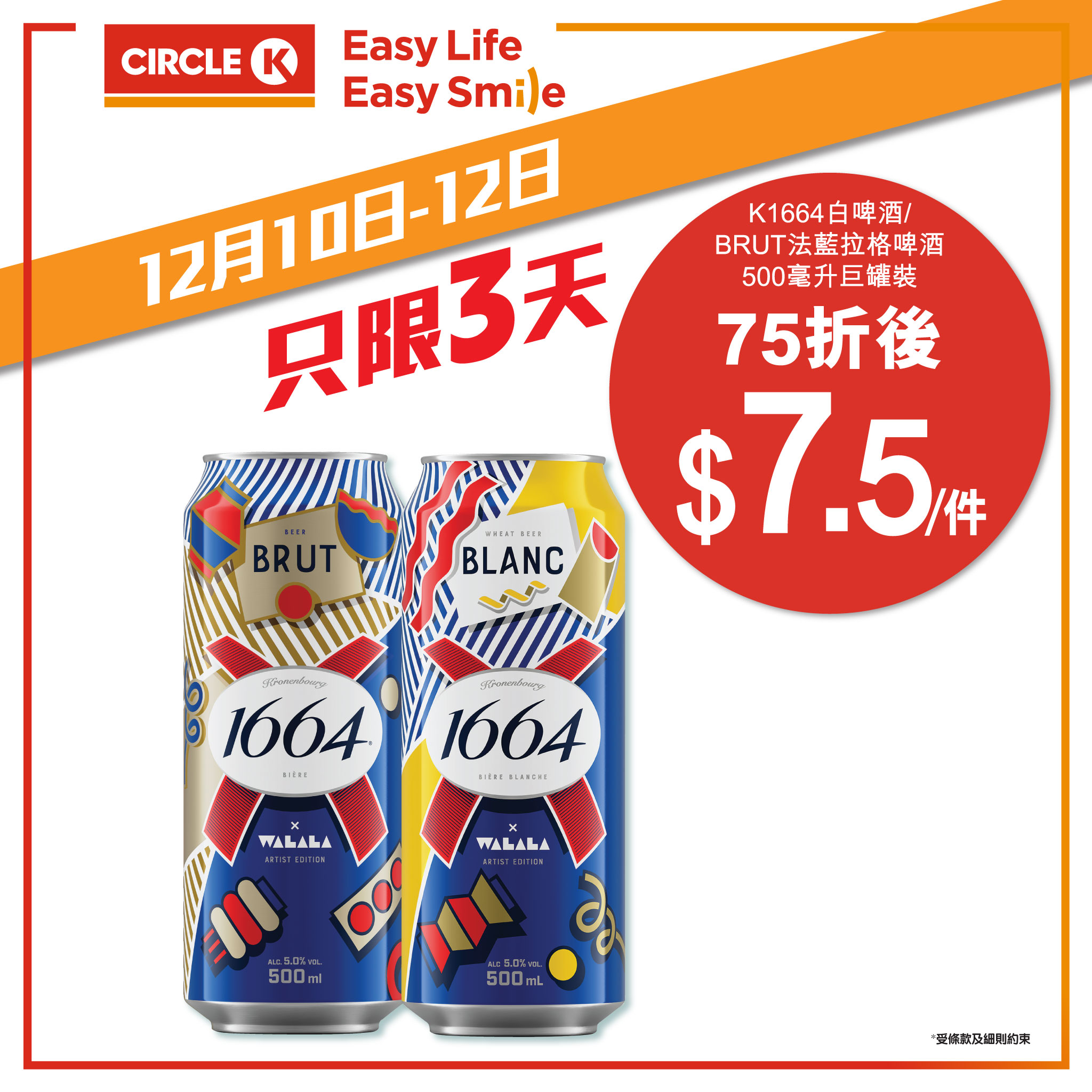 【3日限定】全場啤酒75折狂減!即日起!一連3日,購買任何啤酒產品滿$80即享75折多款精選啤酒優惠等緊你!快啲嚟Circle K 掃貨啦!精選優惠推薦:藍妹啤酒500毫升 4 罐裝 75折後平均每罐$7.9K1664白啤酒/BRUT法藍拉格啤酒500毫升巨罐裝75折後$7.5/件麒麟一番搾500毫升4罐裝75折後平均每罐$7.5朝日啤酒/超爽3.5啤酒500毫升罐裝75折後$6.8/件推廣日期:12月10日早上7時至12月12日(只限3天)-優惠須受條款及細則約束。-購買及飲用啤酒人士必須年滿18歲。#CircleK #OK便利店 #75折 #啤酒優惠 #著數 #限時優惠