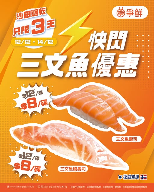 【爭鮮迴轉壽司 - 沙田店\快閃優惠/三文魚減至$8 】