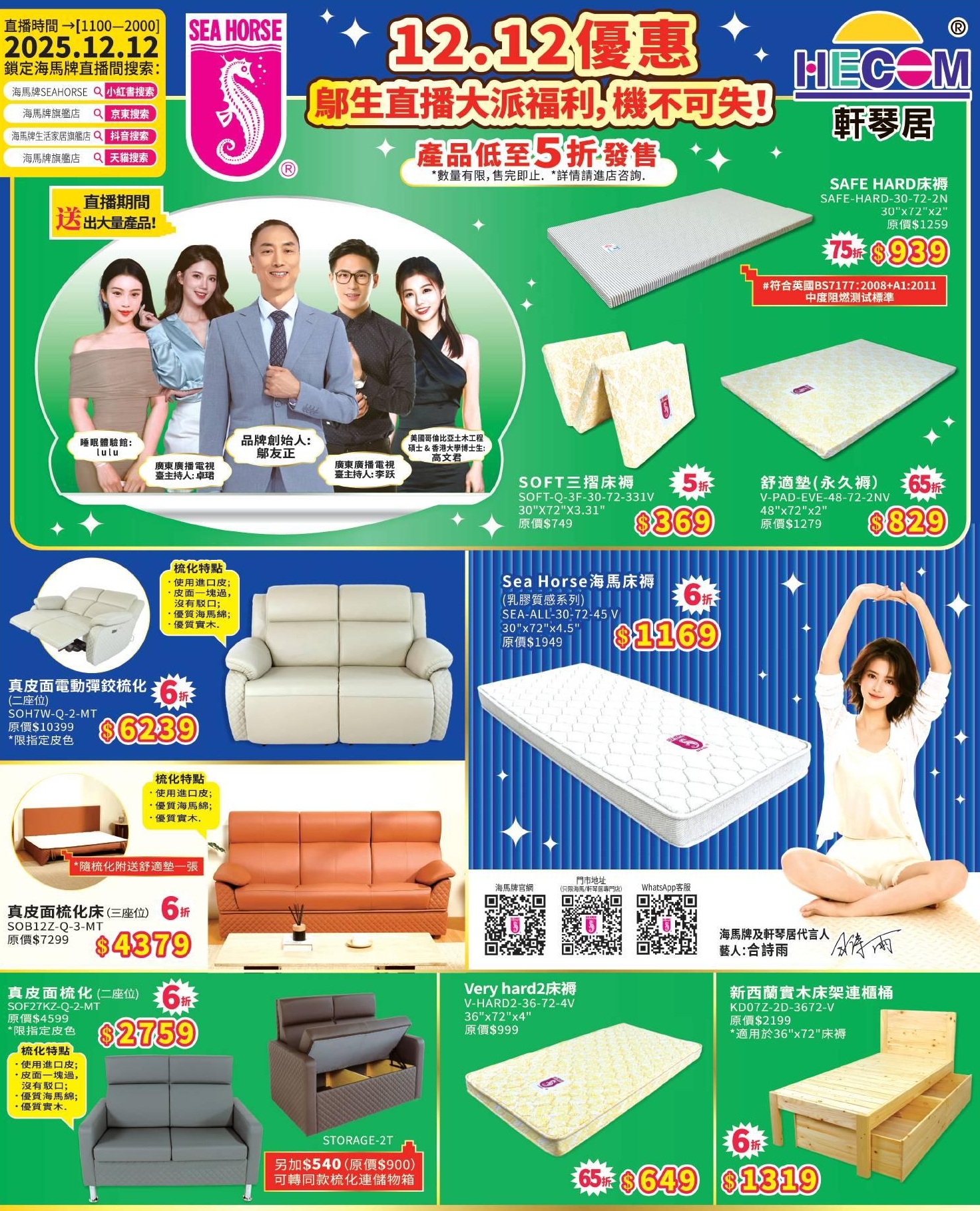 #海馬#海馬牌#海馬直播#雙十二優惠#12.12#鄔友正#合詩雨#SAFE床褥#梳化#梳化床#seahorse #seahorsemattress#hecom#hecomhk#HK#mattress#sofa#furniture#sofabed
