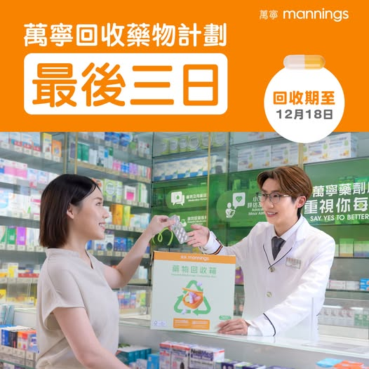 【「萬寧回收藥物計劃」📅仲有 3日就完結啦!】