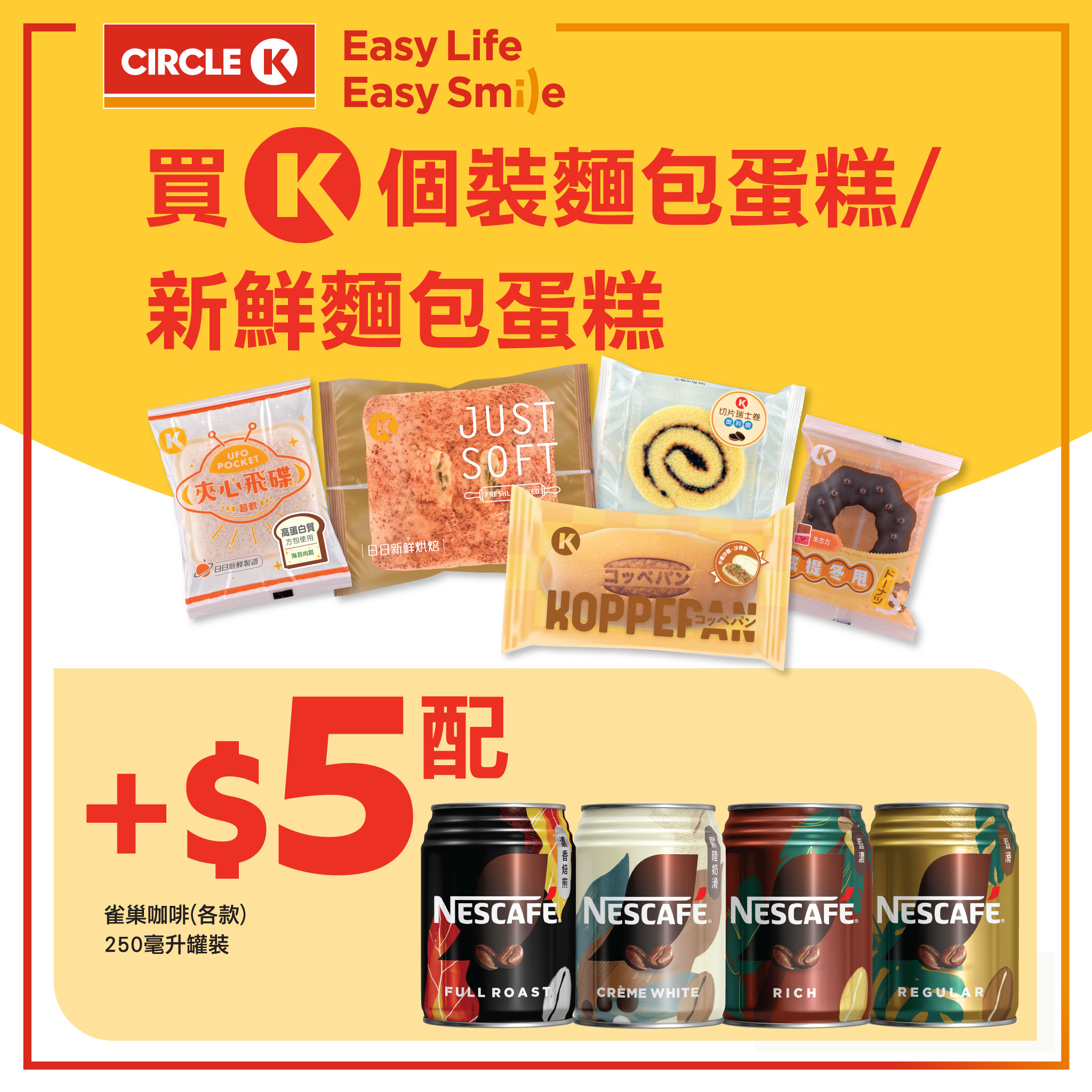 依家喺OK便利店,買 Circle K 個裝麵包蛋糕 / 新鮮麵包蛋糕,只需加: