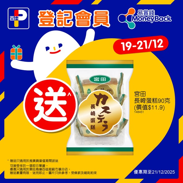 宮田 長崎蛋糕90克* 我哋仲有好多會員著數,快啲成為易賞錢會員,盡情掃貨享受更多優惠啦 !