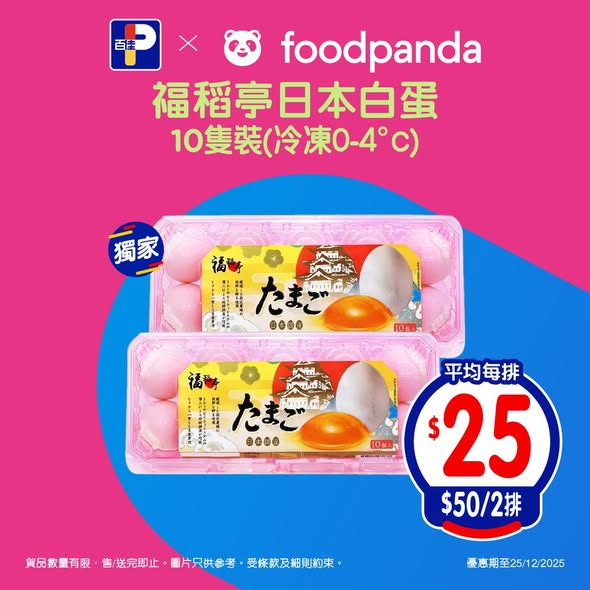 福稻亭日本白蛋10隻裝(冷凍 0-4°c),優惠價$50/2件,平均$25/排