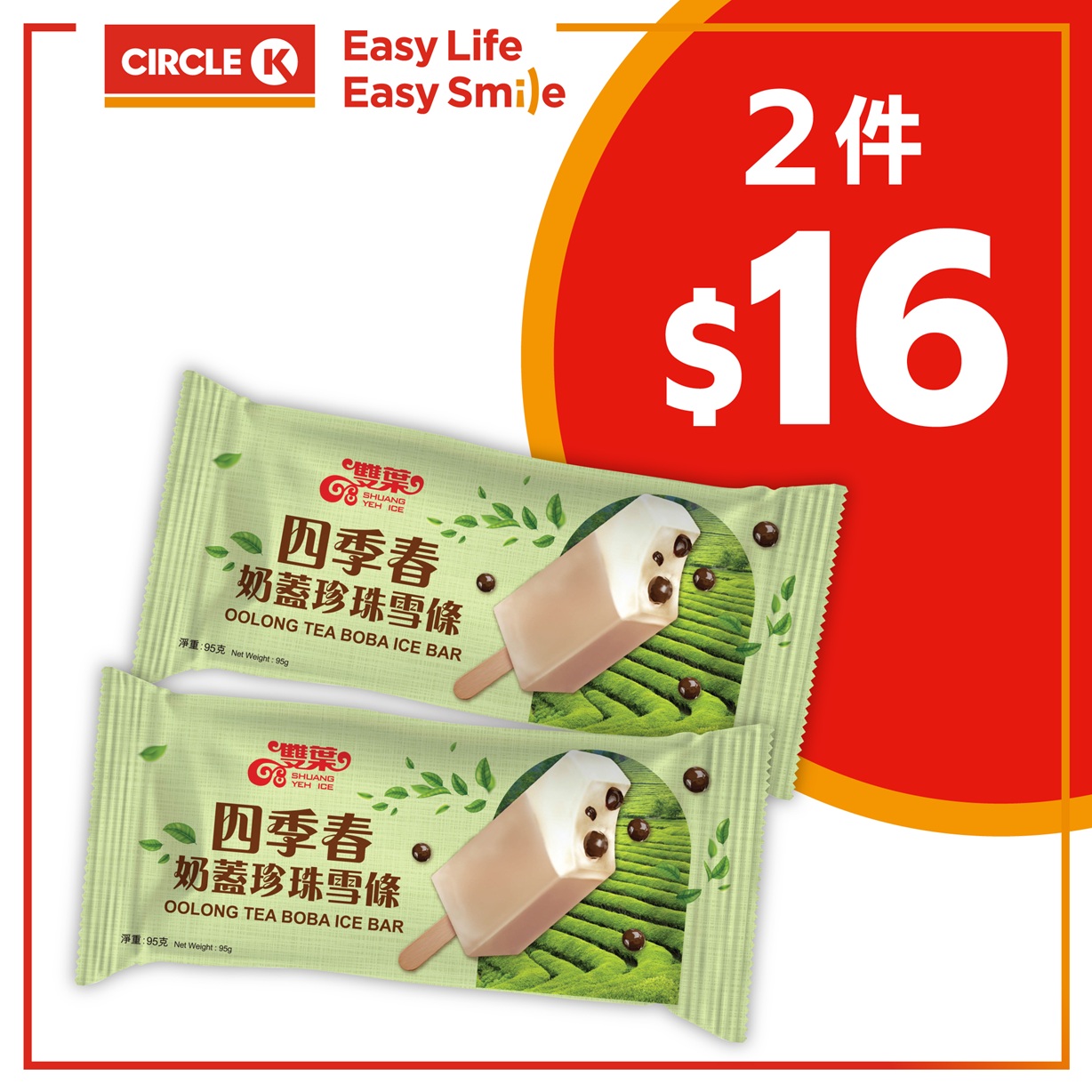 四季春奶蓋珍珠雪條— 2件 $16