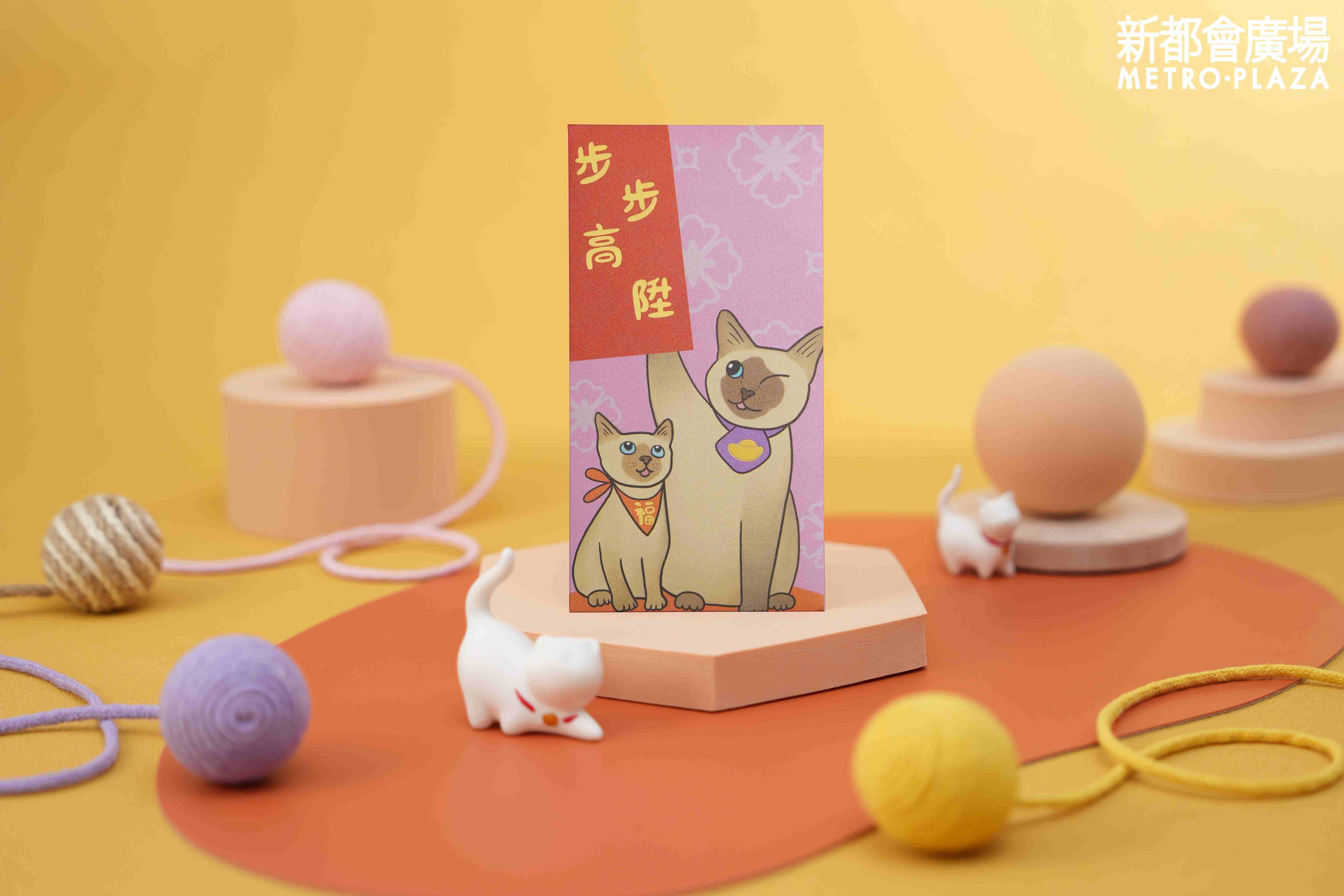 貓不僅形象趣緻可愛,在傳統文化中亦有招財納福的象徵。農曆新年將至,葵芳新都會廣場今年新春特意聯乘本地插畫師Giselle,以「貓肥屋潤」為主題,設計了一套四款限量版賀年利是封。貓咪一直是「福氣擔當」,是次的利是封設計巧妙地將寓意吉祥的超萌貓咪與傳統新年祝福完美融合,向全港市民送上財源廣進、萬事順心的美好心意,與大家一同喜迎新歲!商場現召集一眾貓奴主子齊來支持!