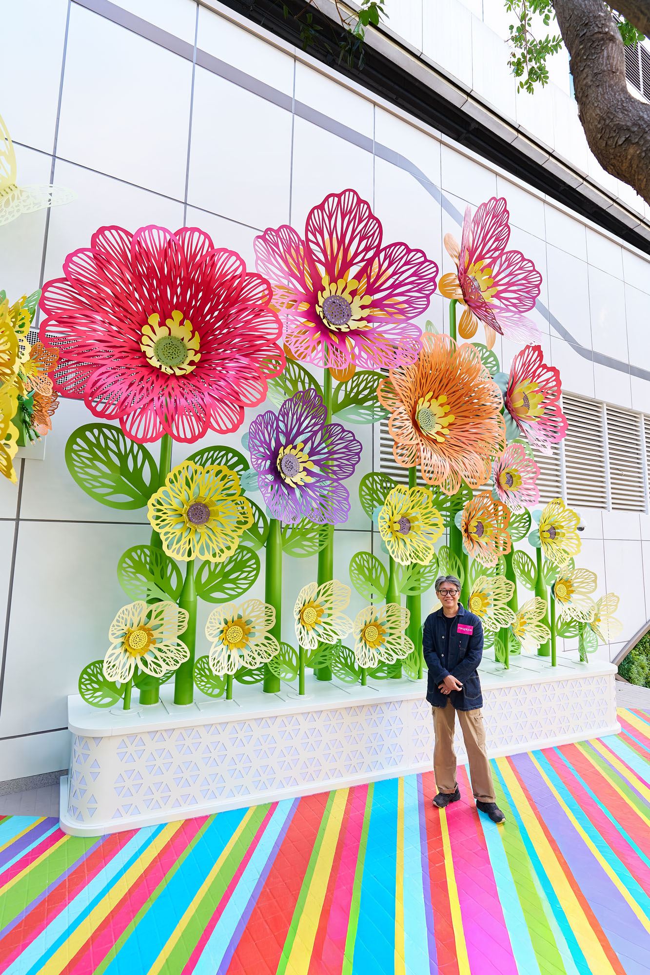 Mira ARTvenue由即日起亦會開放常設大型藝術裝置「花之丘」,首度邀請日本藝術家國吉滿先生為Mira ARTvenue匠心打造。國吉滿先生主要從居住地—沖繩的海洋珊瑚中汲取創作靈感而啟發其獨創標誌性的「珊瑚花」設計,作品曾開展空間設計及立體藝術品創作,亦曾在台灣與香港地區負責戶外藝術裝置與立體作品設計。而今次於「花之丘」運用了繽紛色彩打造超現實的巨型立體珊瑚花藝術裝置,帶出大自然生命力。「花之丘」圍繞「人與自然和諧共生」的核心主題,透過具象化的花植形態詮釋人與自然的緊密互動,傳達共生共榮的美好願景;這片綻放於都市空間的巨型花群,白天與夜晚的觀賞體驗截然不同,希望能為前來觀賞的人帶來治癒感和啟發無限想象力。